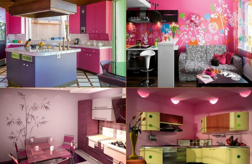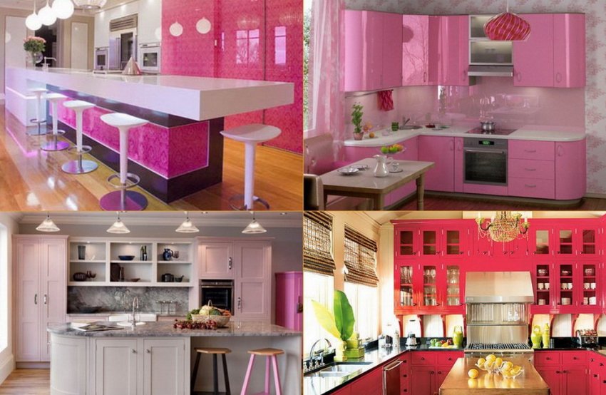 Вариантов создания розового интерьера много, но чаще всего на кухне используются следующие приёмы: