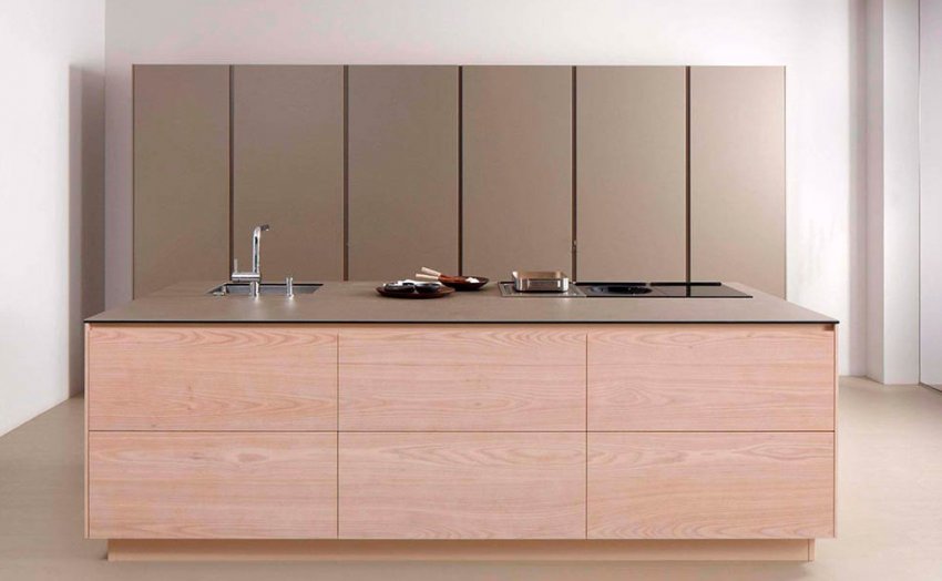 - Дерево — элитные долговечные кухни из хвойных пород древесины, устойчивые к влаге и несклонные к образованию гнили. Преимущественно деревянные изделия обходятся без отделки, сохраняя в первозданном виде всю прелесть природной текстуры.