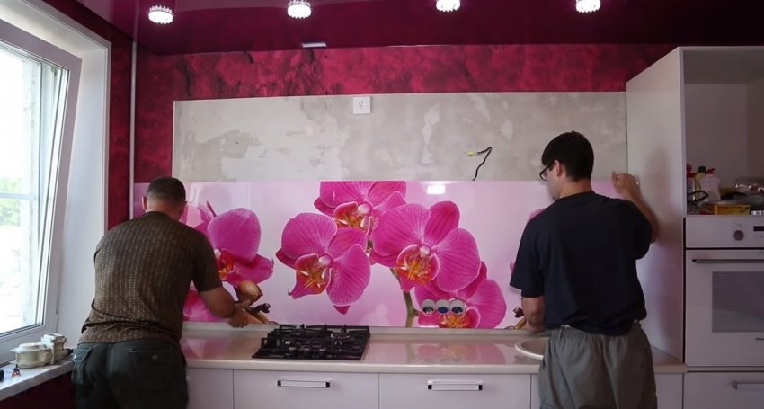 Кухонная панель всегда длинная, поэтому устанавливать её надо с помощником