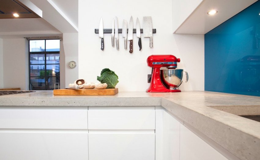 Раньше обустройство кухонного фартука предполагало крепление отделочных материалов прямо на стену, но сейчас всё чаще стену между шкафами закрывают цельной панелью. В ТВ-передачах о ремонте при установке столешницы из искусственного камня почти всегда дополняют её таким же фартуком. В промежутке между стеной и фальшпанелью можно легко спрятать не только трубы, но и провода для дополнительных розеток и выключателей.