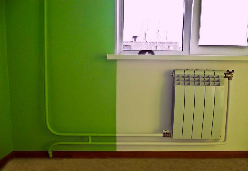 Даже окрашенные в цвета стены трубы отопления сложно назвать незаметными