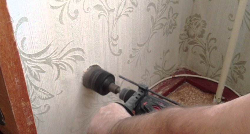 Чтобы создать отверстия для установки розетки или выключателя, используется специальное сверло-коронка