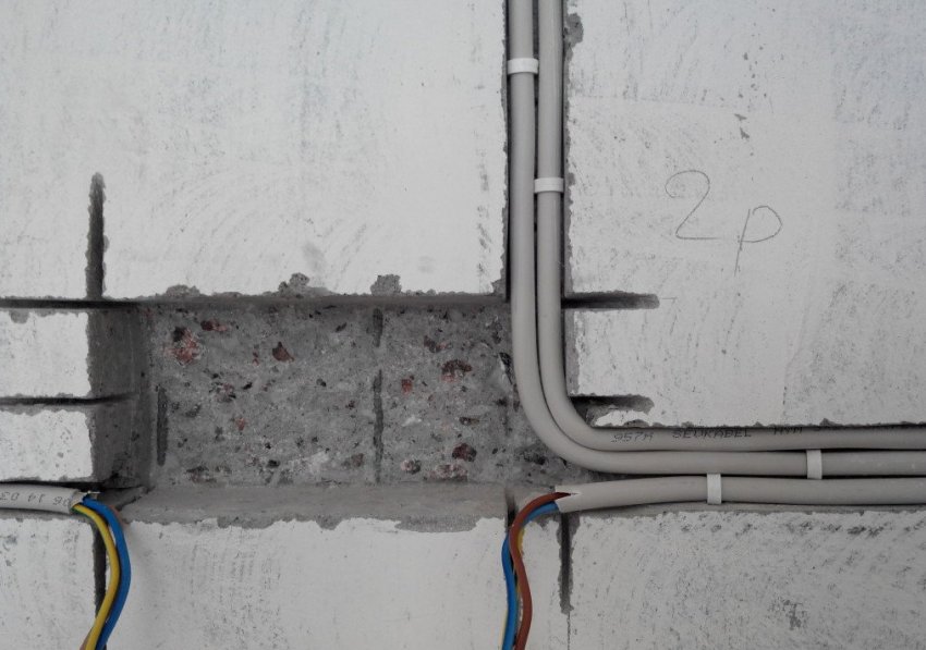- После того как кабель уложен и закреплён, штробы заделывают гипсом или алебастром. Перед заделкой штроб рекомендуется прозвонить проложенные кабели, чтобы убедиться в их целостности.