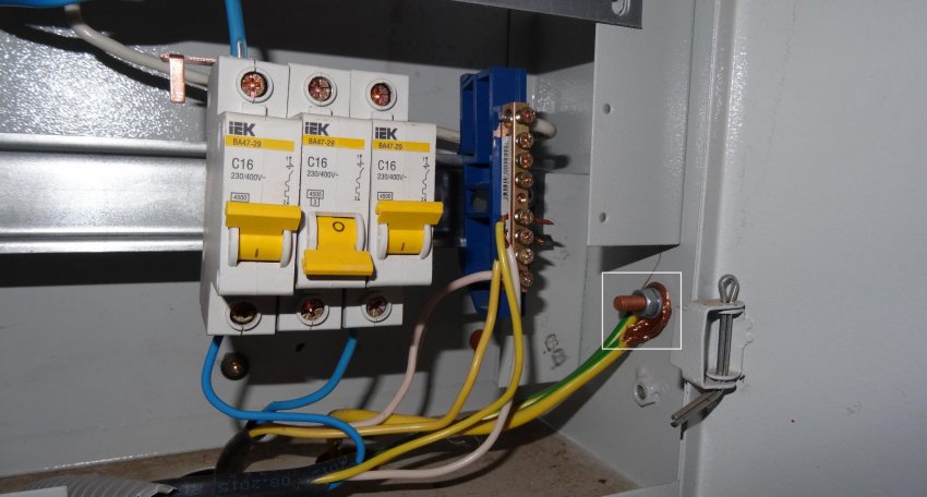 Для подключения фаз используют белый, чёрный и коричневый провода, ноль подводят синим, а «землю» — жёлто-зелёным проводом