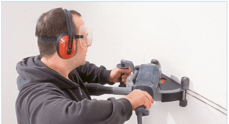 - во время прокладывания борозд в бетонных и кирпичных стенах работать надо обязательно в защитных очках;