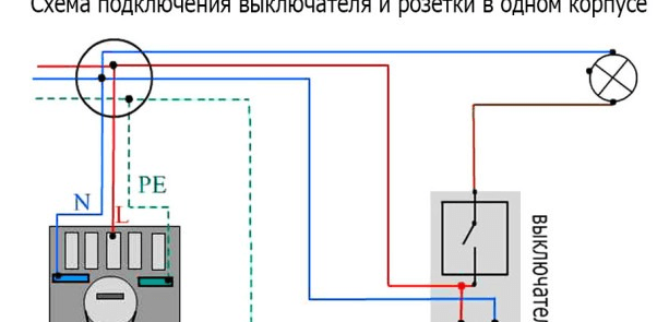 С целью экономии провода и разгрузки распределительной коробки от большого количества подключений розетку и выключатель можно подсоединить рядом.