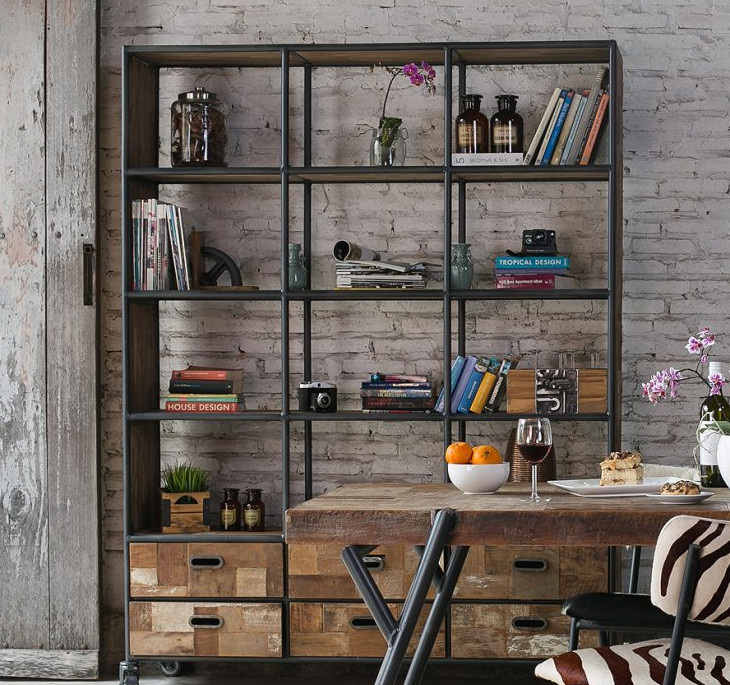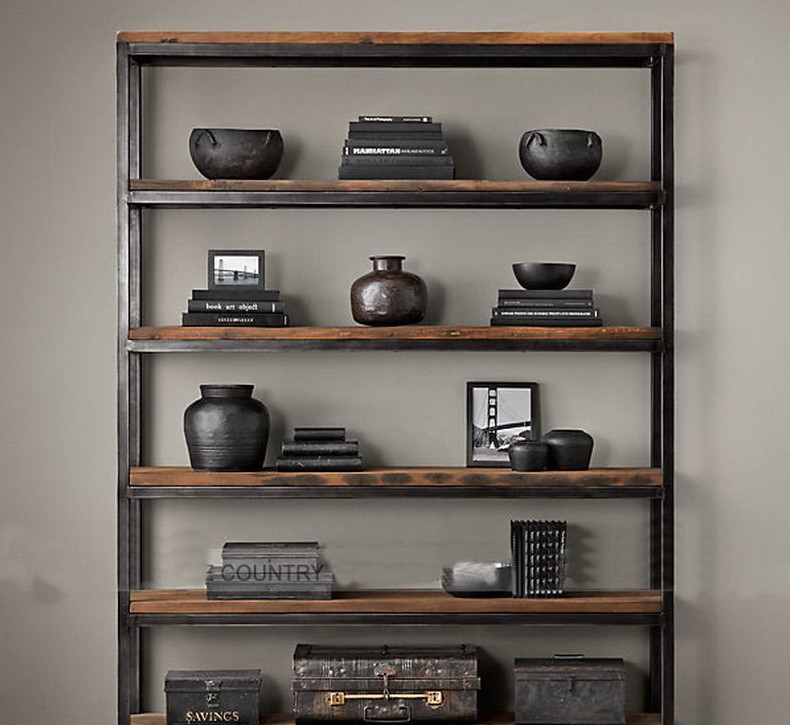 Полки и стеллажи в стиле лофт отличаются простым дизайном и грубоватым исполнением