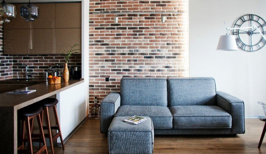 Бетонная или кирпичная стена может присутствовать в интерьере любого помещения