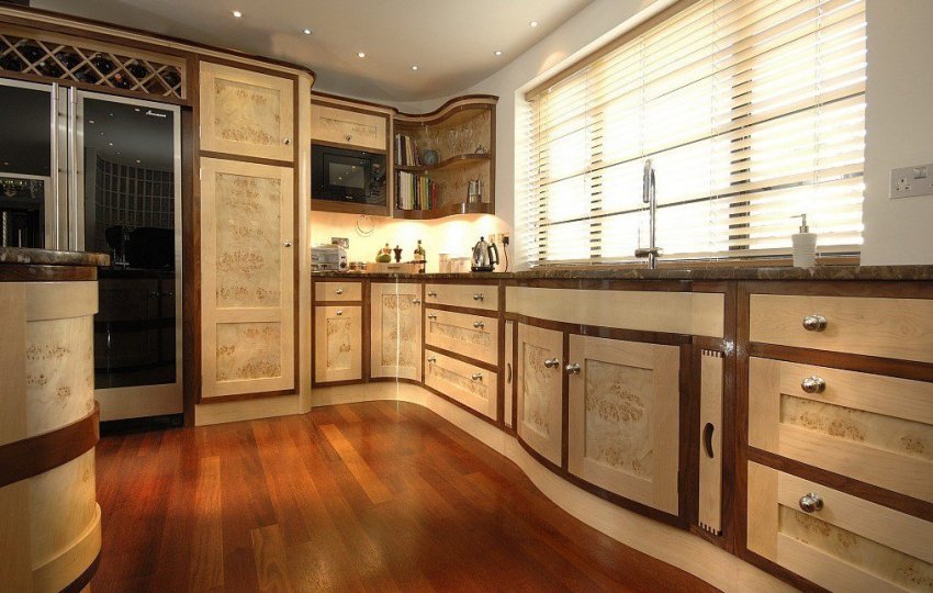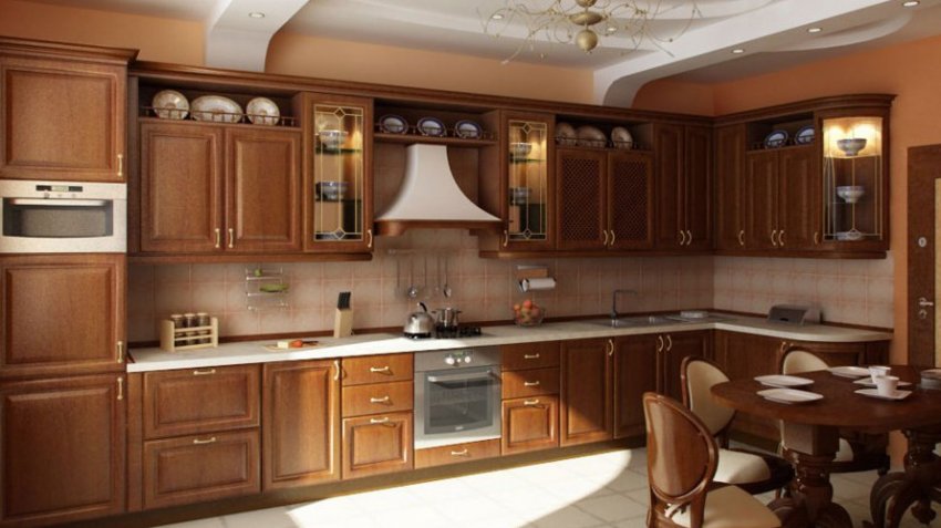 В обстановке любой кухни можно использовать любые предметы натурального коричневого тона, но важно соблюдать умеренность и принципы выбранного стиля. Наиболее эффектно будут выглядеть следующие элементы:
