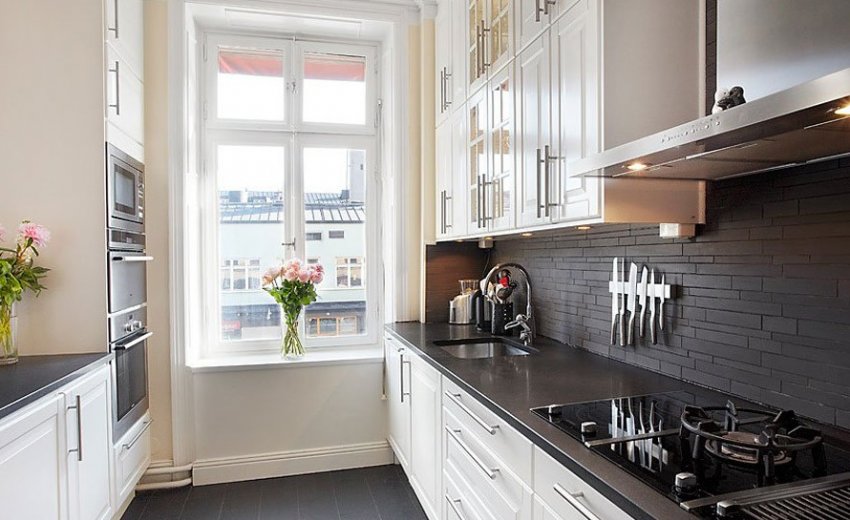 - на тёмных поверхностях хорошо заметны пыль и потёки и поэтому не стоит делать рабочую зону в таком тоне, а лучше использовать средние оттенки;