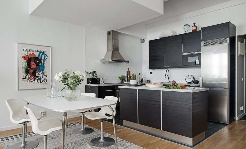 Стол-остров может быть совсем небольшим, что оптимально для кухни без гостиной