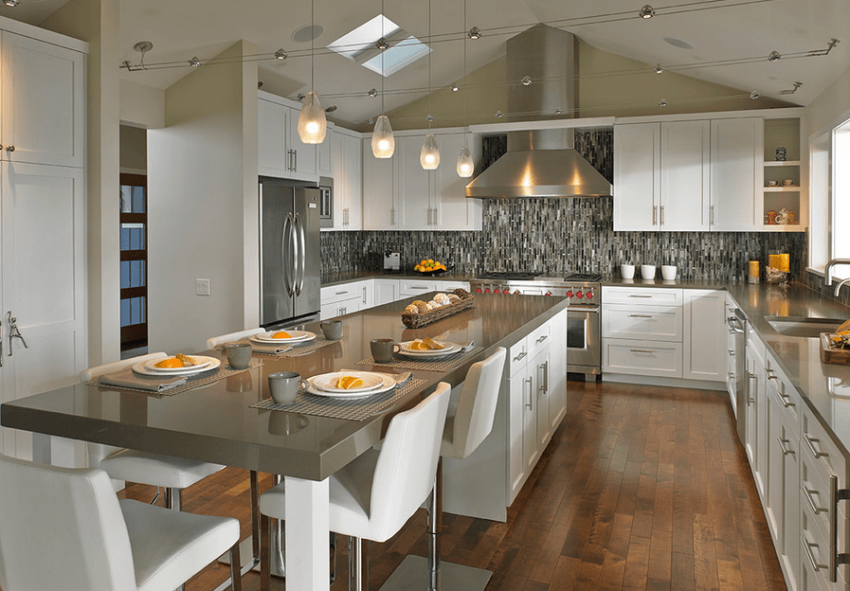 На кухне любого типа важно использовать материалы, устойчивые к загрязнениям и сохраняющие свой первоначальный вид длительное время: