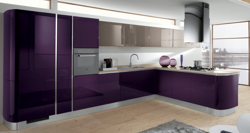 Фотогалерея: кухни с гарнитуром в фиолетовом цвете
