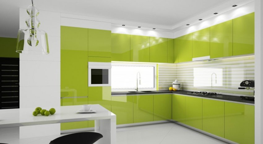 Правила оформления кухни в зелёном цвете