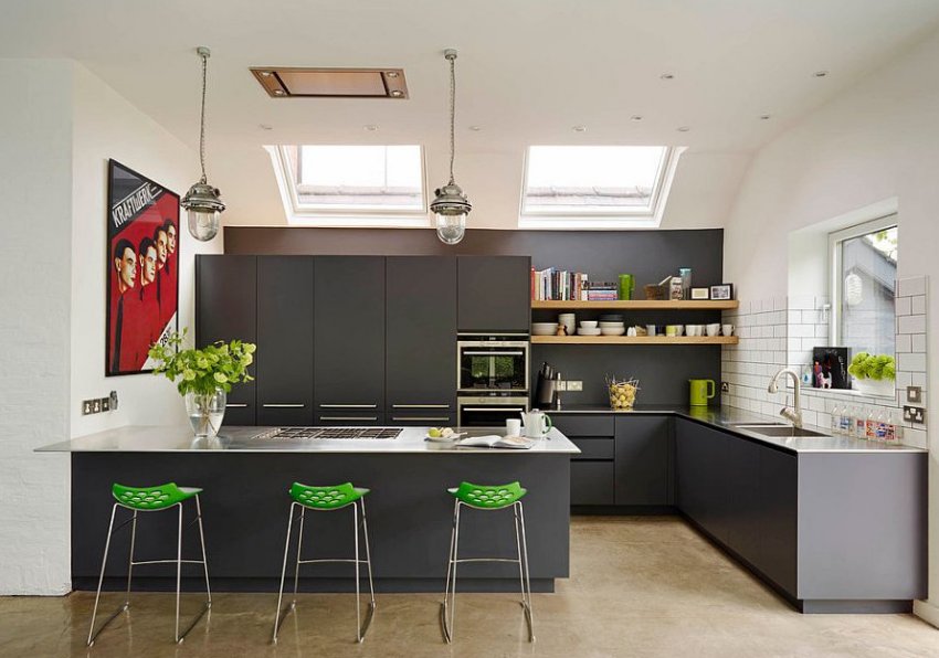 На кухне может быть совсем немного зелёного цвета