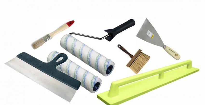 - валик, кельма, шпатели разного размера для нанесения смеси;