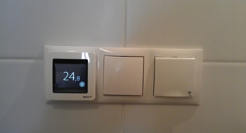 Питание и регулятор нагрева тёплого электрического пола выводится на стену отдельно или вместе с выключателями света