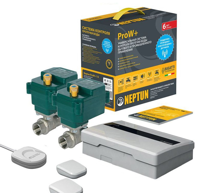 Универсальный прибор защиты от протечек «Нептун» состоит из датчиков влажности и электрического оборудования
