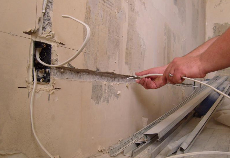 В зависимости от того, какая планируется проводка, подготавливаются места установки. При организации скрытой проводки выполняются следующие действия: