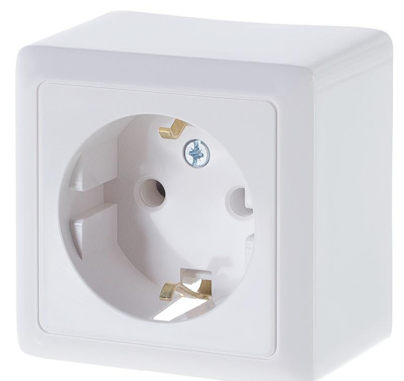 - Накладные. Эти устройства применяются при наружной проводке. Розетка устанавливается прямо на поверхность стены, без подготовительных процедур. Отличительные черты — быстрота монтажа и доступность при необходимости ремонта или замены. Недостаток — внешний вид, многим не нравится, что розетка выступает на поверхности стены.