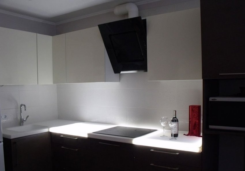 Подсветка рабочей поверхности делает кухню удобной для приготовления пищи
