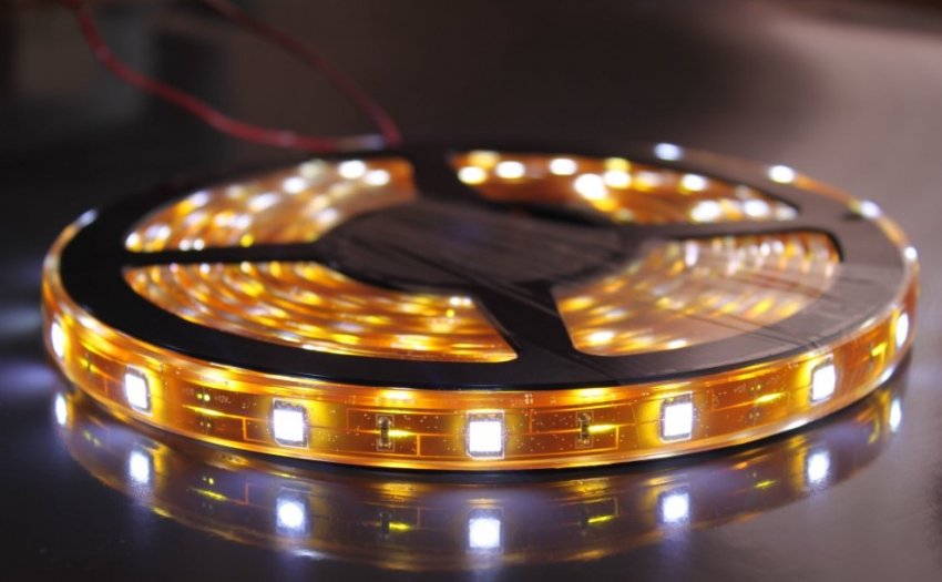 Самым простым видом дополнительного освещения является светодиодная лента, представляющая собой гибкую печатную плату, на которой равноудалённо друг от друга находятся светодиоды. Благодаря этому поток распределяется равномерно. В обычных моделях светодиоды расположены открыто, поэтому необходимо принимать меры по их защите от влаги. Существуют специальные влагозащищённые модификации, которые залиты герметичной силиконовой оболочкой, но стоят они дороже, а яркость их свечения ниже.