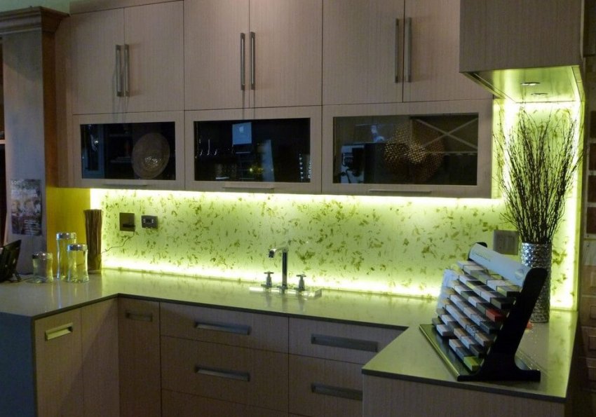 Светодиодная подсветка гарнитура на кухне: за и против