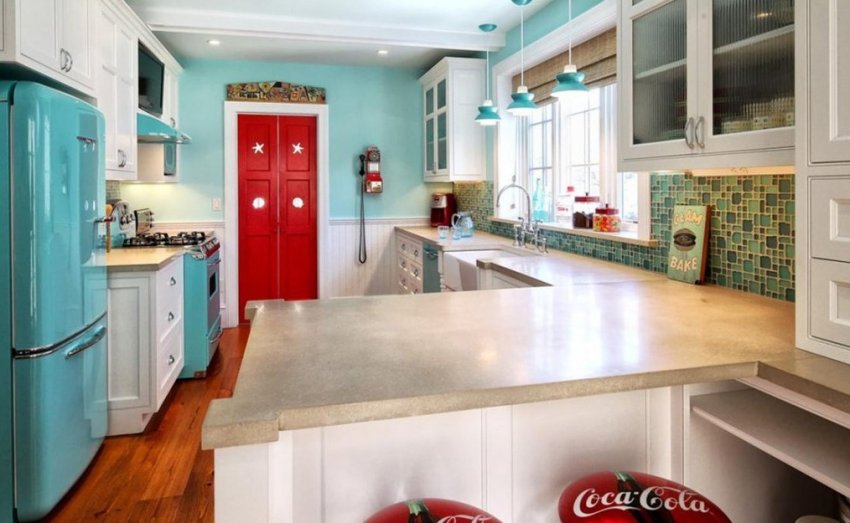 Ретро стиль является многогранным направлением дизайна и поэтому при оформлении кухни важно определить подстиль. В зависимости от этого подбирают аксессуары, технику, материалы и цвета. Такой подход сделает кухню уютной и стильной.