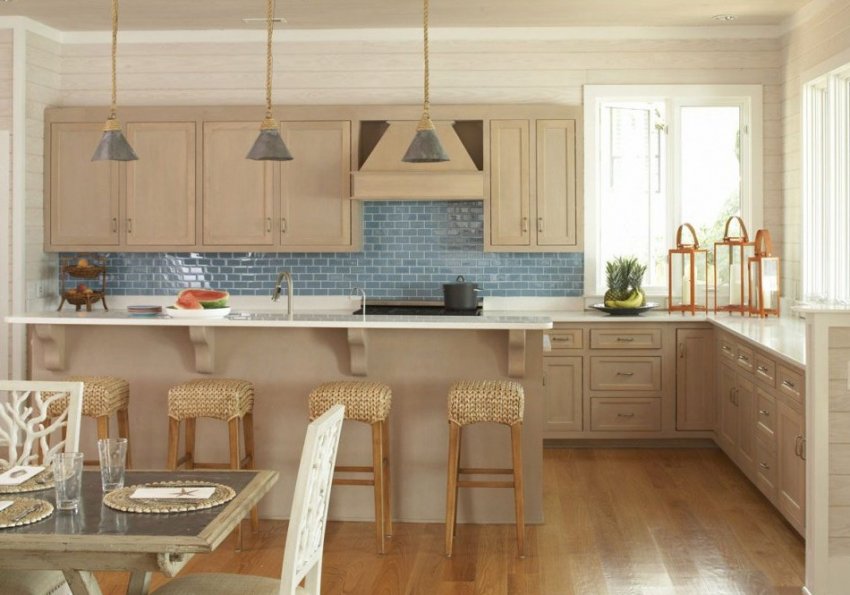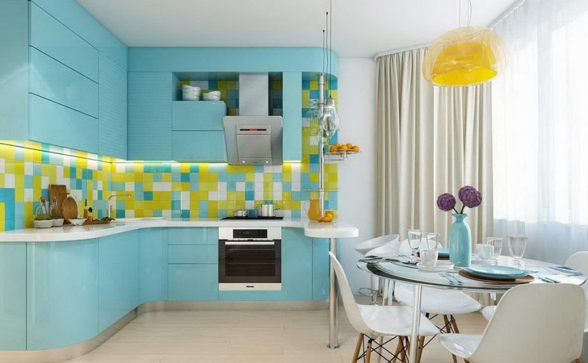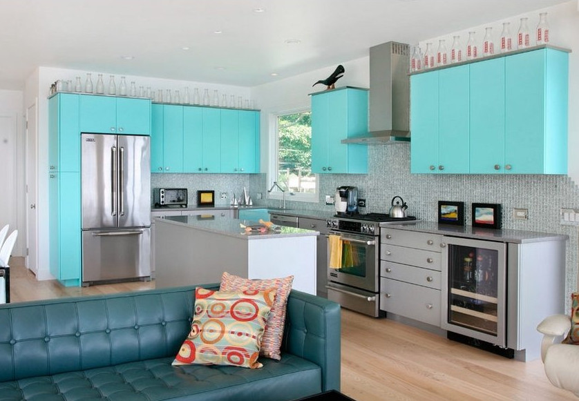 Фотогалерея: дизайн кухни с элементами голубого цвета