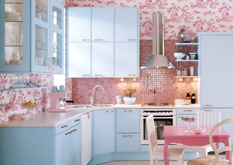 Преимущества голубого цвета в обстановке кухни: