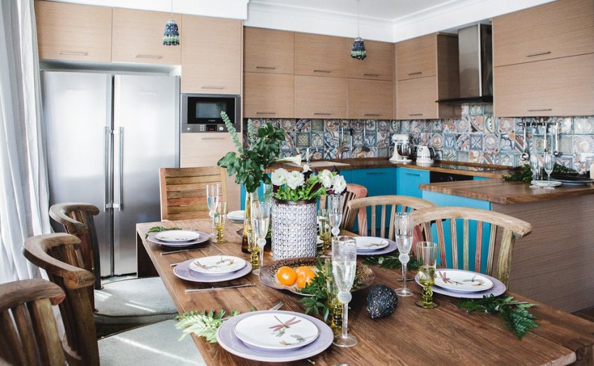 Обеденный стол является центральным элементом большой кухни