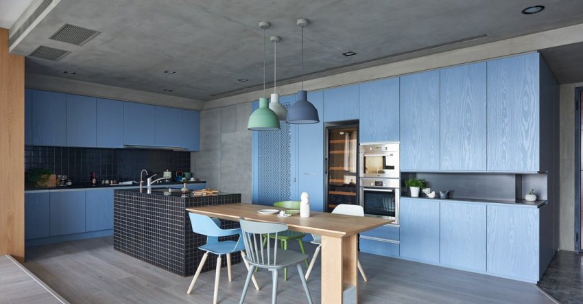 Голубой цвет в дизайне кухни