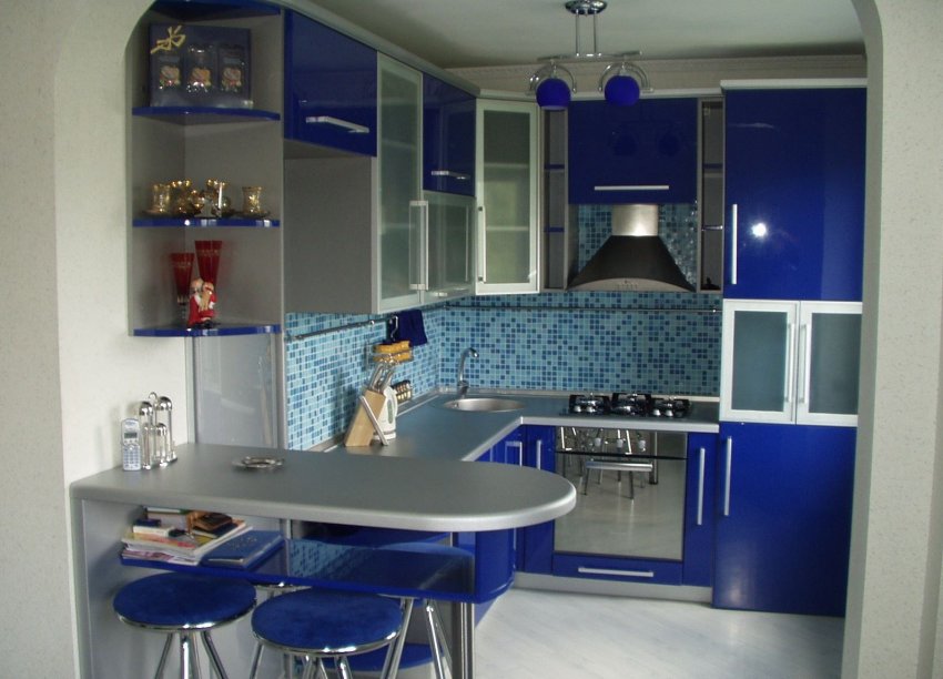 Фотогалерея: интерьер кухни с голубыми акцентами
