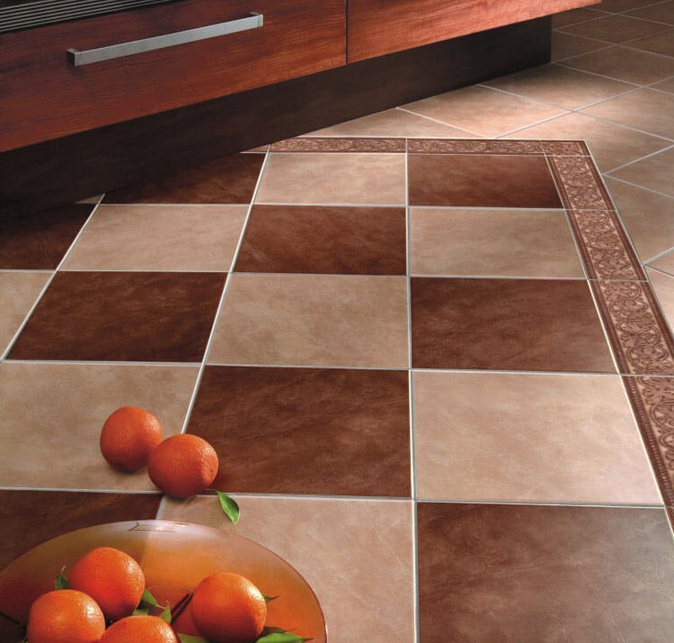 - керамическая плитка практична в качестве напольного покрытия и для фартука. Она может быть глянцевой или матовой, однотонной или с узором;