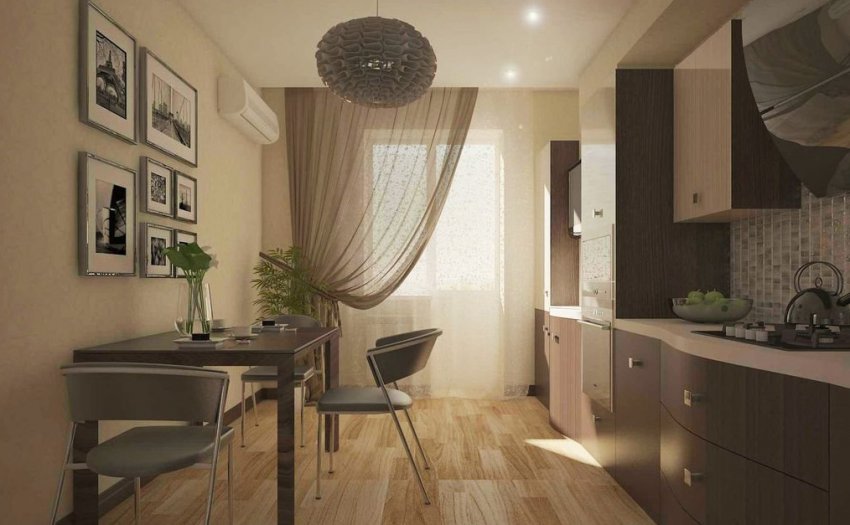 На кухне лучше всего повесить лёгкие и компактные шторы