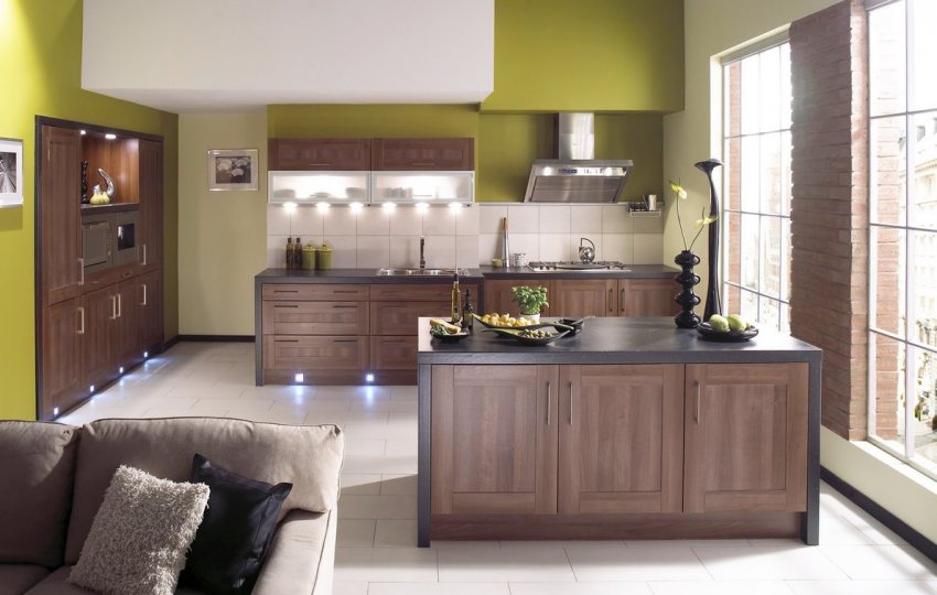 Кухня — место частой перемены температуры и влажности, скопления жира и копоти. Поэтому каждый элемент в этом помещении должен быть выполнен из материалов, устойчивых к частому мытью чистящими средствами: