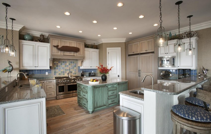 На большой кухне уместна островная удобная мебель