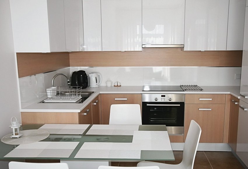 На маленькой кухне стоит устанавливать светлую мебель и технику