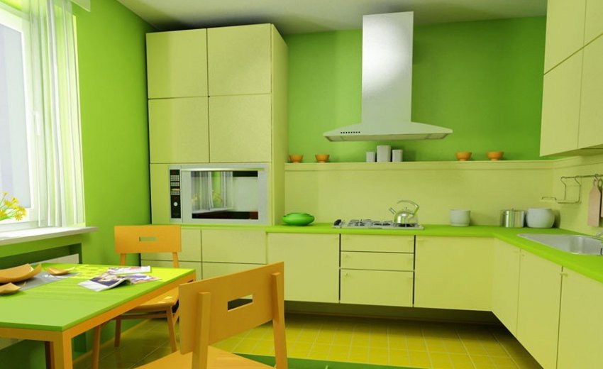 Яркость салатового цвета не позволяет использовать в интерьере большое количество деталей такого оттенка. И также следует учесть некоторые правила выбора и оформления кухни: