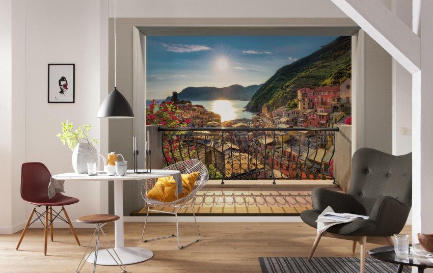 В лаконичном однотонном интерьере фотообои станут «изюминкой»