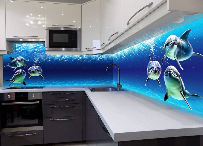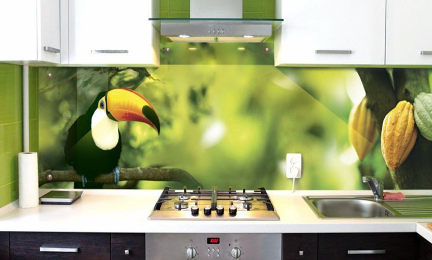 Кухонных фартук из фотообоев, напечатанных на стекле, называется скинали
