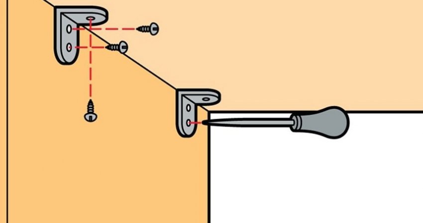 Вертикальные детали стеллажа фиксируют не только саморезами, но и уголками
