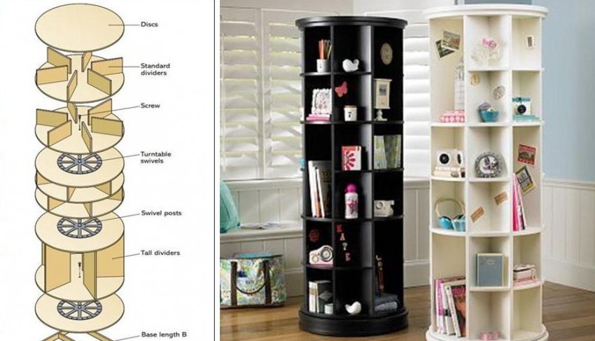 | Цилиндр | Крутящаяся на одном месте конструкция, внутри которой удобно размещать наградные кубки, коллекционные предметы и книги | Комната, где между разными участками границу необходимо создать оригинально, так как этого требует интерьер |