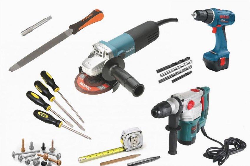 Для монтажа накладного замка на металлические двери понадобятся ручные и электрические инструменты