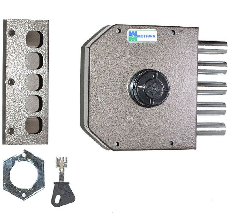 Барьер 4 — хороший накладной замок и довольно прост в установке. Но российский. Нечто подобное — Герда Титан ZX. При визуальной схожести ключа у этих замков много конструкционных отличий. Помповая Моттура также отличный вариант. Но мне кажется, что цена её сейчас выскочит из вашего бюджета. Моттура 40. 701- это замочек на деревянные дверки, ничего примечательного, низкая взломостойкость.