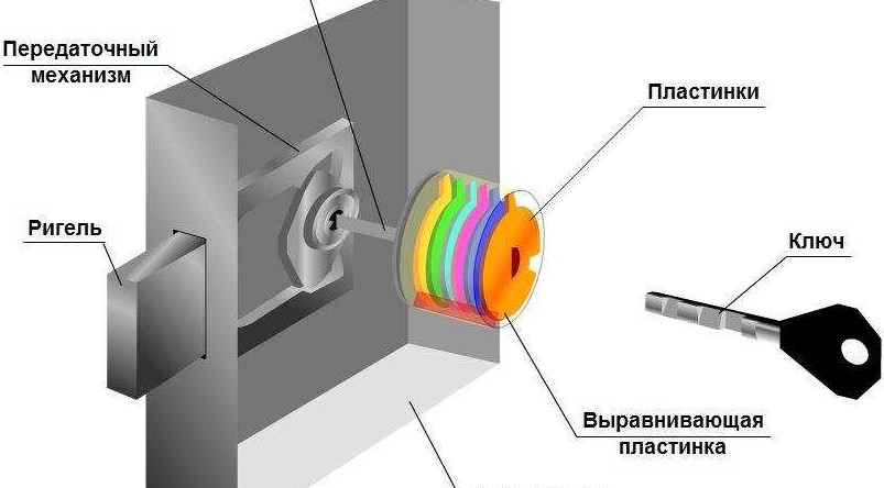 - Дисковые. Это одна из разновидностей цилиндровых механизмов, но здесь вместо цилиндров установлены диски с вырезами. По сравнению со штифтовыми механизмами надёжность дисковых устройств буде выше.
