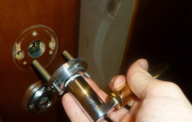 - Демонтаж фурнитуры, которая будет мешать выполнению работ. Снимают таблички, глазок, ручки, замки и другие элементы.