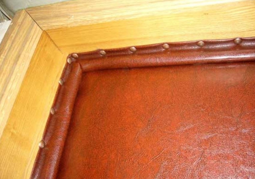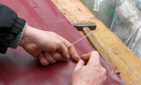 Дерматин фиксируют обивочными гвоздями с шагом 10–12 см