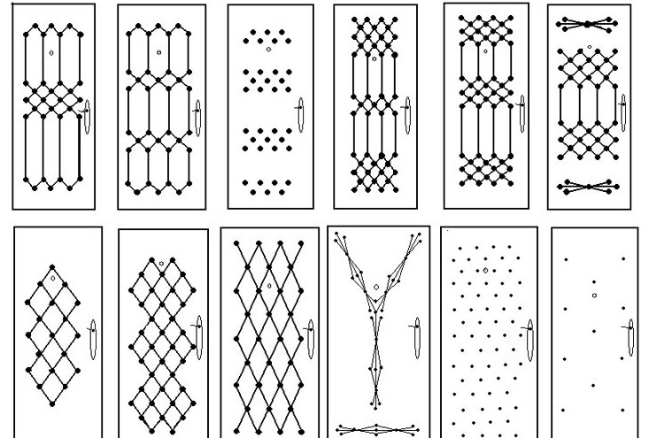 - Декоративная отделка. Для получения более красивого результата при помощи специальных гвоздей и шнура или струны можно сделать индивидуальный рисунок. Для этого создают проекцию узора на полотне, затем по его контурам прибивают гвозди, а между ними натягивают шнур или струну.