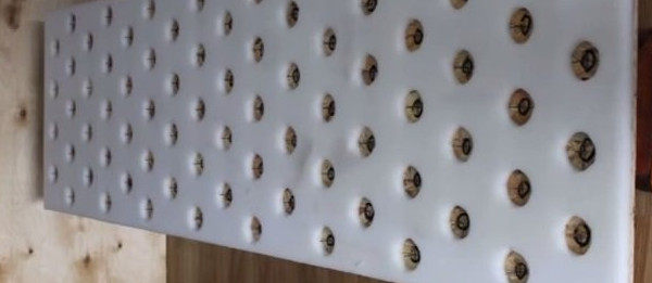 - Разметка створки двери. Определяют точки, в которых будут установлены пуговицы.